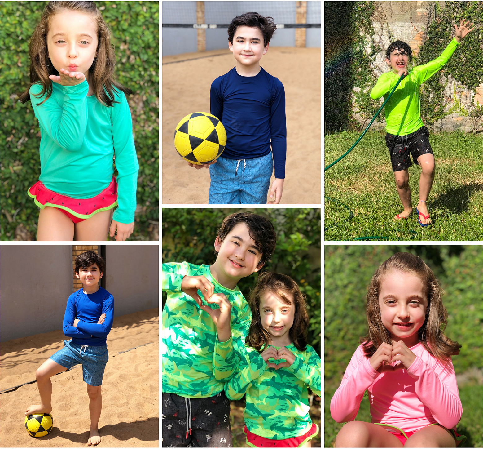 As crianças podem usar na praia, na piscina do clube ou do condomínio, no parquinho, nos passeios no sítio, para brincar na pracinha, para andar de bicicleta, skate ou patins, nas aulas de tênis, futebol, vôlei de praia e todos os esportes ao ar livre, para surfar, nos passeios da escola, para levar os cachorros para passear e para todas as atividades na rua que estejam sujeitas a exposição de raios solares.